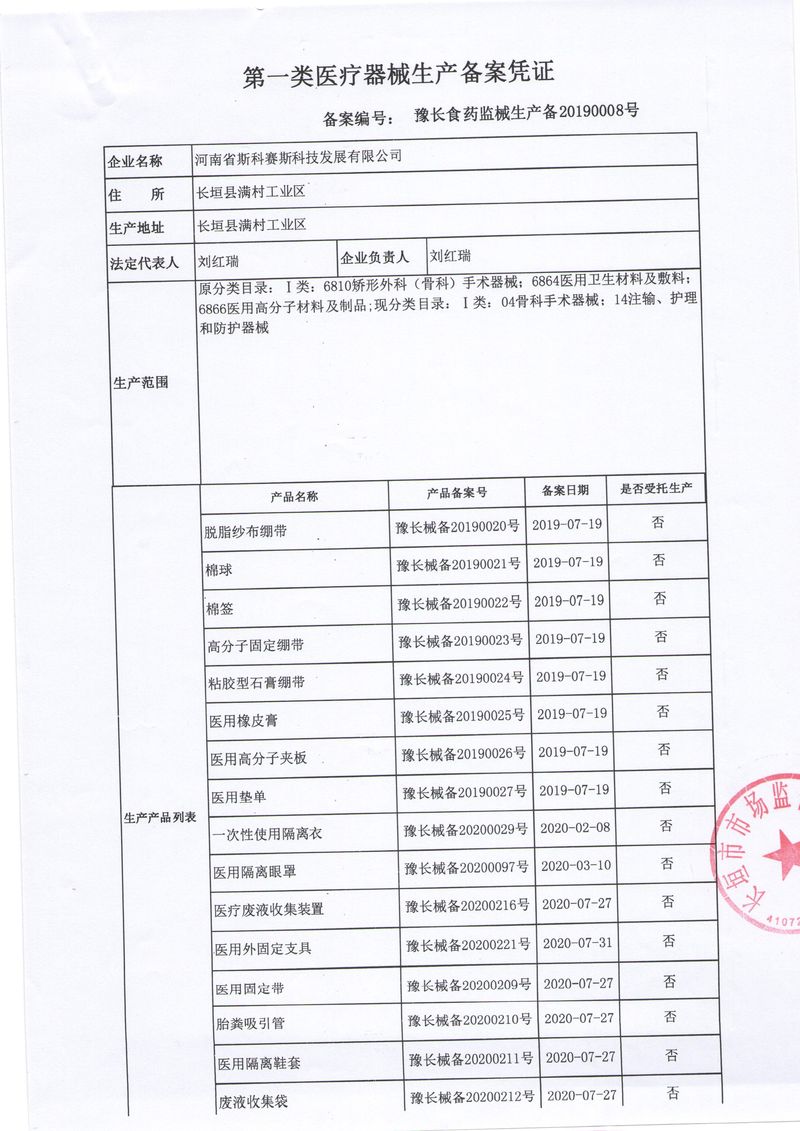 河南省斯科賽斯科技發(fā)展有限公司創(chuàng)建于 2011 年,位于“中國醫(yī)療耗材之都”- 河南省長垣縣,西臨 308 省道,南靠新菏鐵路,北依長濟高速,交通便捷,經(jīng)濟發(fā)達,環(huán)境優(yōu)美。斯科賽斯積極進入醫(yī)療健康和服務(wù)領(lǐng)域,秉承為用戶創(chuàng)造價值的理念,專注于醫(yī)用耗材解決方案的研發(fā)和運營,并為用戶提供完善的產(chǎn)品解決方案;  斯科賽斯主要生產(chǎn)醫(yī)用麻醉系列、醫(yī)用高分子系列、醫(yī)用敷料包系列、醫(yī)用無紡布系列、醫(yī)用防護系列、醫(yī)用脫脂棉系列、生物材料制品類等七大類、100 多個品種、400 多個規(guī)格的產(chǎn)品。公司占地面積約 30000 平方米,建筑面積20000 平方米,擁有 10 萬級的凈化車間總面積 10000 平方米。擁有國際先進水平的生產(chǎn)設(shè)備和檢測儀器,技術(shù)裝備精良,檢測手段完善,為醫(yī)療行業(yè)的不斷發(fā)展進步提供保障。公司順利通過 ISO9001、ISO13485 質(zhì)量管理體系認(rèn)證。  斯科賽斯堅持研發(fā)高科技新產(chǎn)品,力爭在醫(yī)療器械關(guān)鍵領(lǐng)域取得技術(shù)和研發(fā)的重大突破;立足國內(nèi)和國際兩個市場,逐步實現(xiàn)管理理念、經(jīng)營機制、人力資源、技術(shù)、產(chǎn)品、市場等全方位對接,提高企業(yè)的核心競爭力;過去的歲月里,斯科賽斯砥礪前行,誠信務(wù)實,銳意進取,不斷創(chuàng)新,用自己的睿智和辛勞,以富有責(zé)任感的使命,在探索中追求,在追求中超越,致力于成為值得信賴的醫(yī)療用品生產(chǎn)企業(yè)!在未來的日子里,斯科賽斯將一如既往豪情滿懷,信心百倍,攜手并肩,執(zhí)著追求,向更高的的目標(biāo)前進,鑄造新的輝煌!